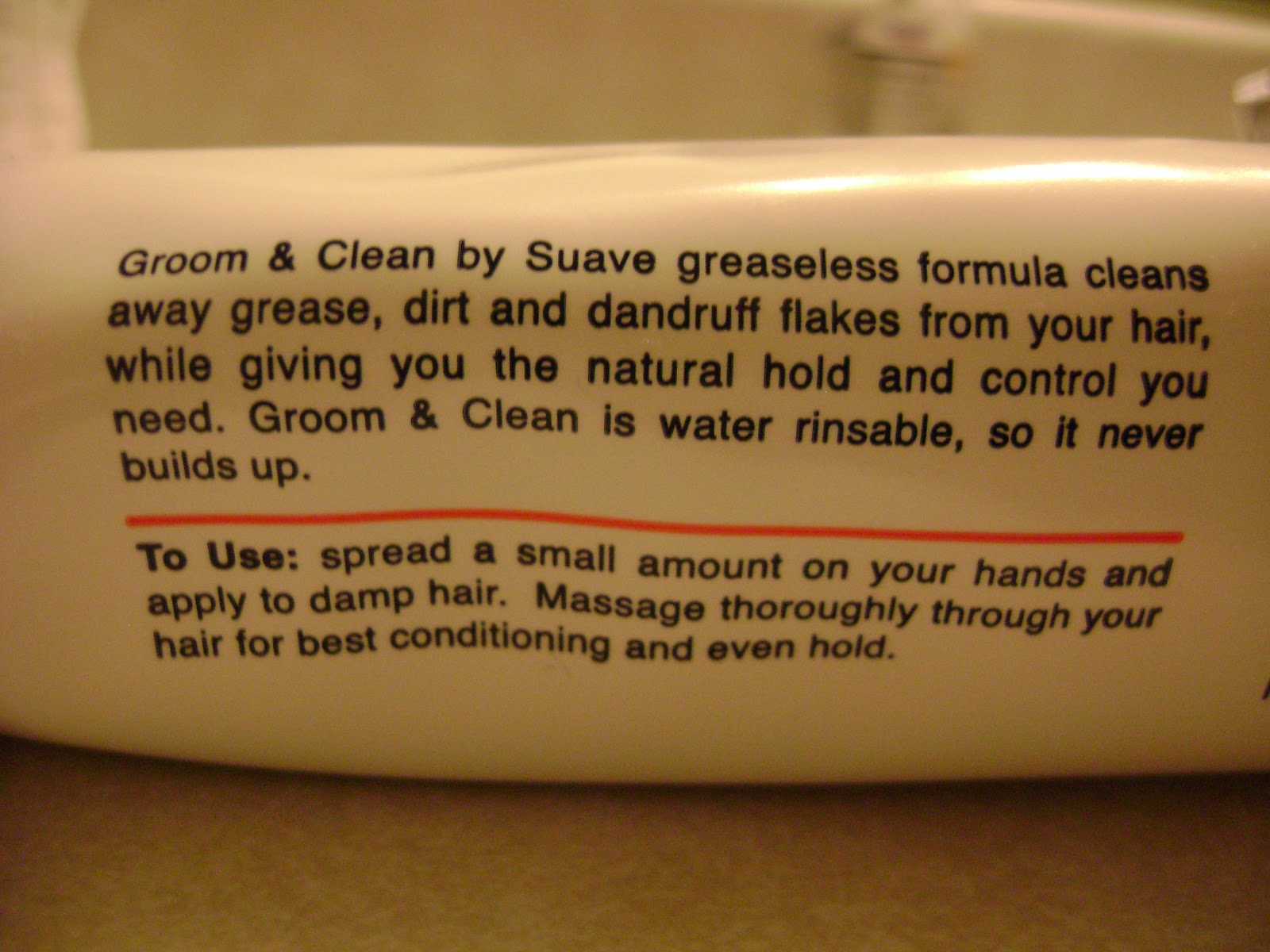 Groom&Clean, one of the classic products for everyone right? That's what I thought, saw some at Walmart for 3$ so I figured why not.. Slathered some up, put in it and said damn, this stuff smells like shit. Looks like blue toothpaste, smells really bad, and I was too pissed about my head smelling like crap to even want to work with it..